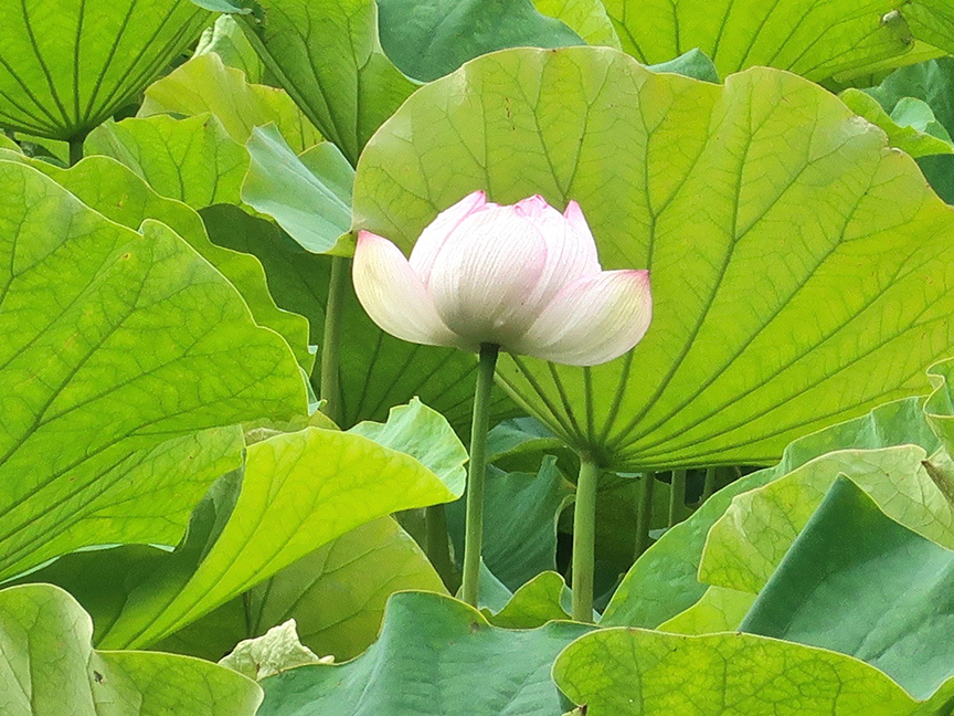 Sankei-en has special early weekend opening hours during The Season, because (who knew?) lotus flowers only bloom in the morning, and they don’t sleep in. They open at first light, and are already starting to close up again by 9:00, so ya gotta really strap on your alarm clock to catch them at their peak.
