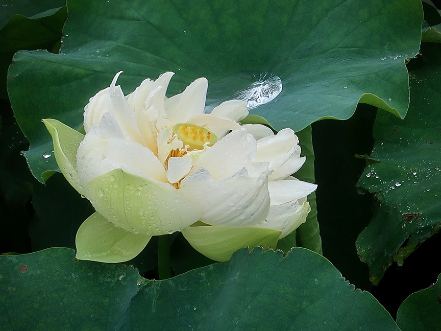 And if you’re like me, there are few things more satisfying in the world than watching raindrops collect on lotus leaves until they spill: