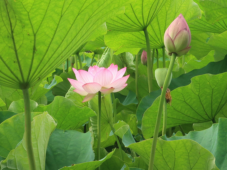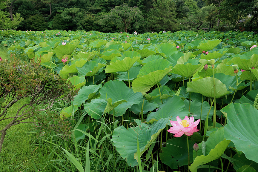 Most flower seasons in Japan are like hitting the jackpot, but lotus season is more of a treasure hunt. Instead of fields of I-can’t-believe-my-eyes color, you have to hunt for the sublime pinkness amid a sea of green.
