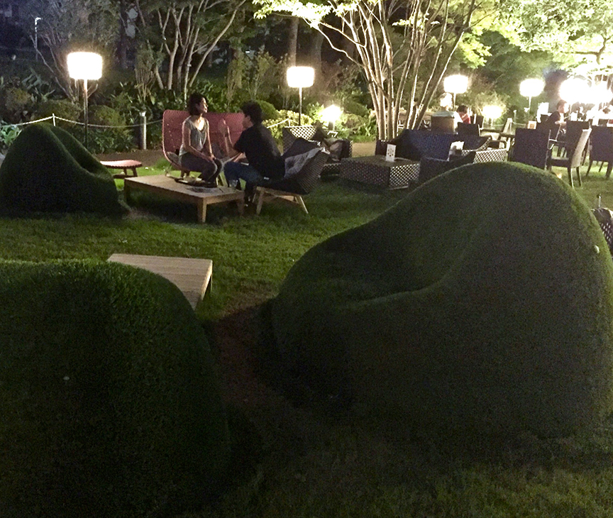 You can also meet up with friends in the outdoor lounge, complete with this excellent take on the idea of “lawn chairs”