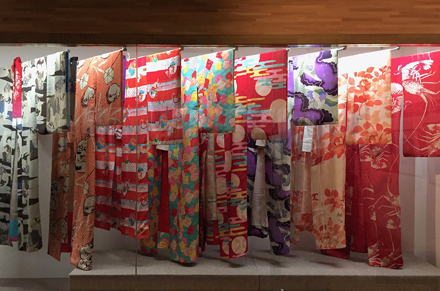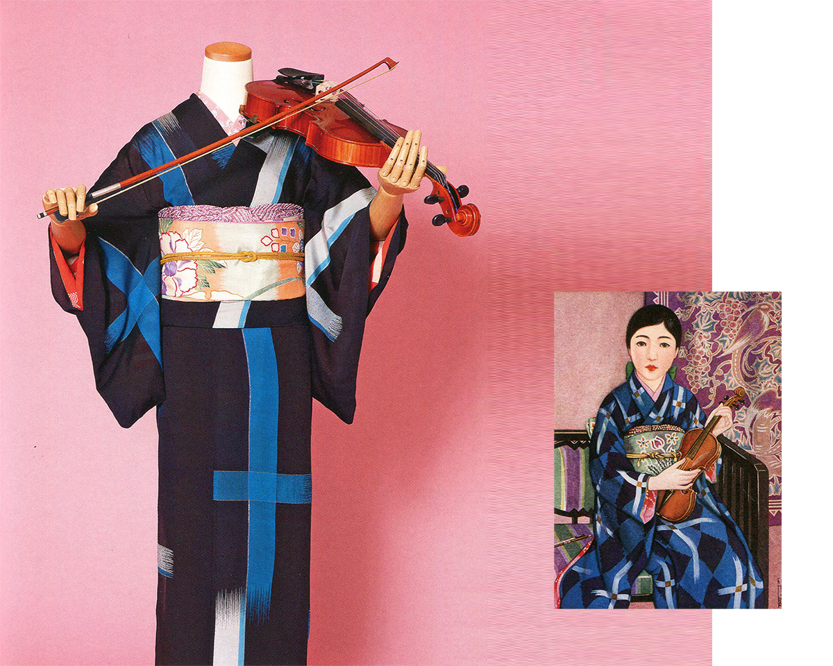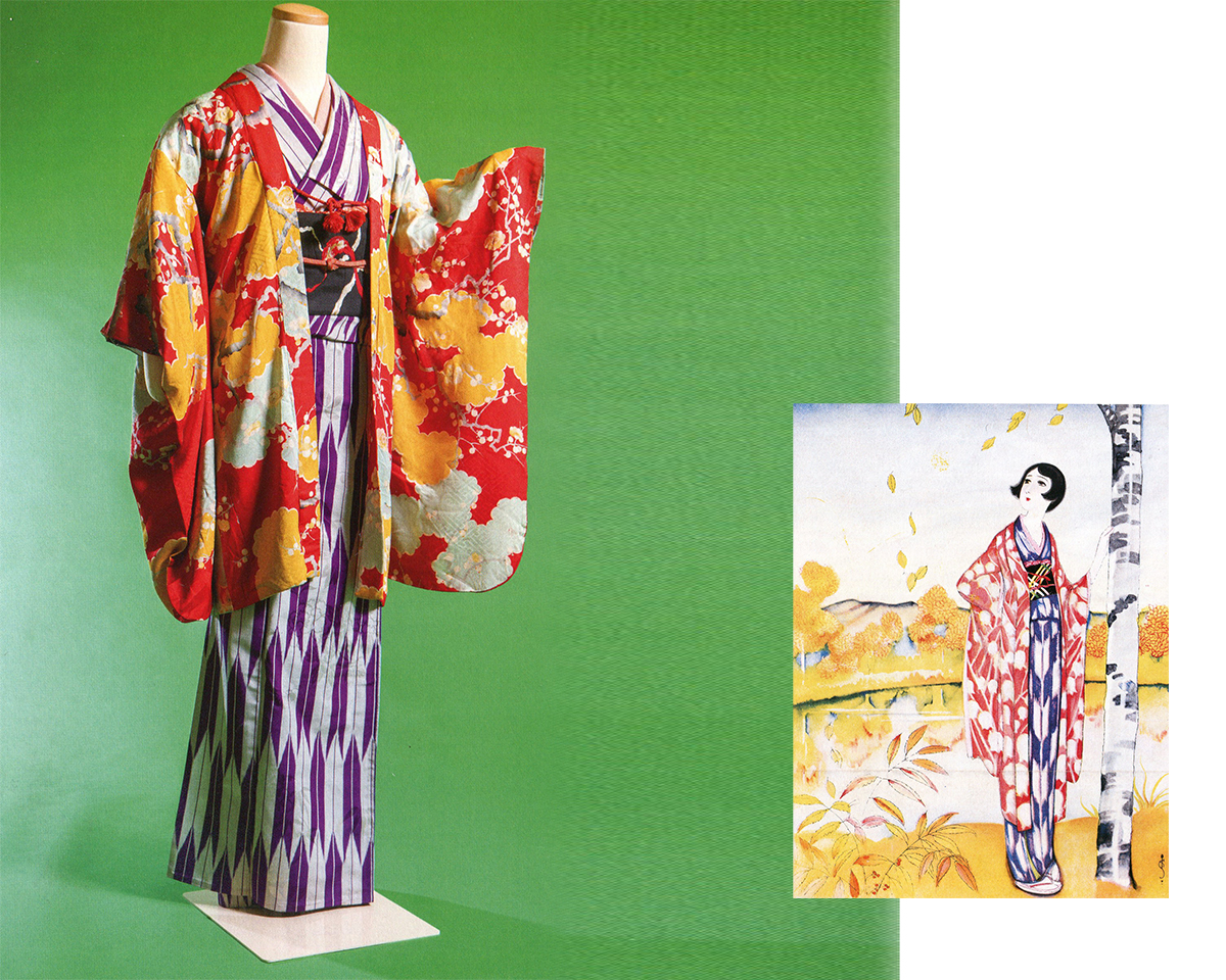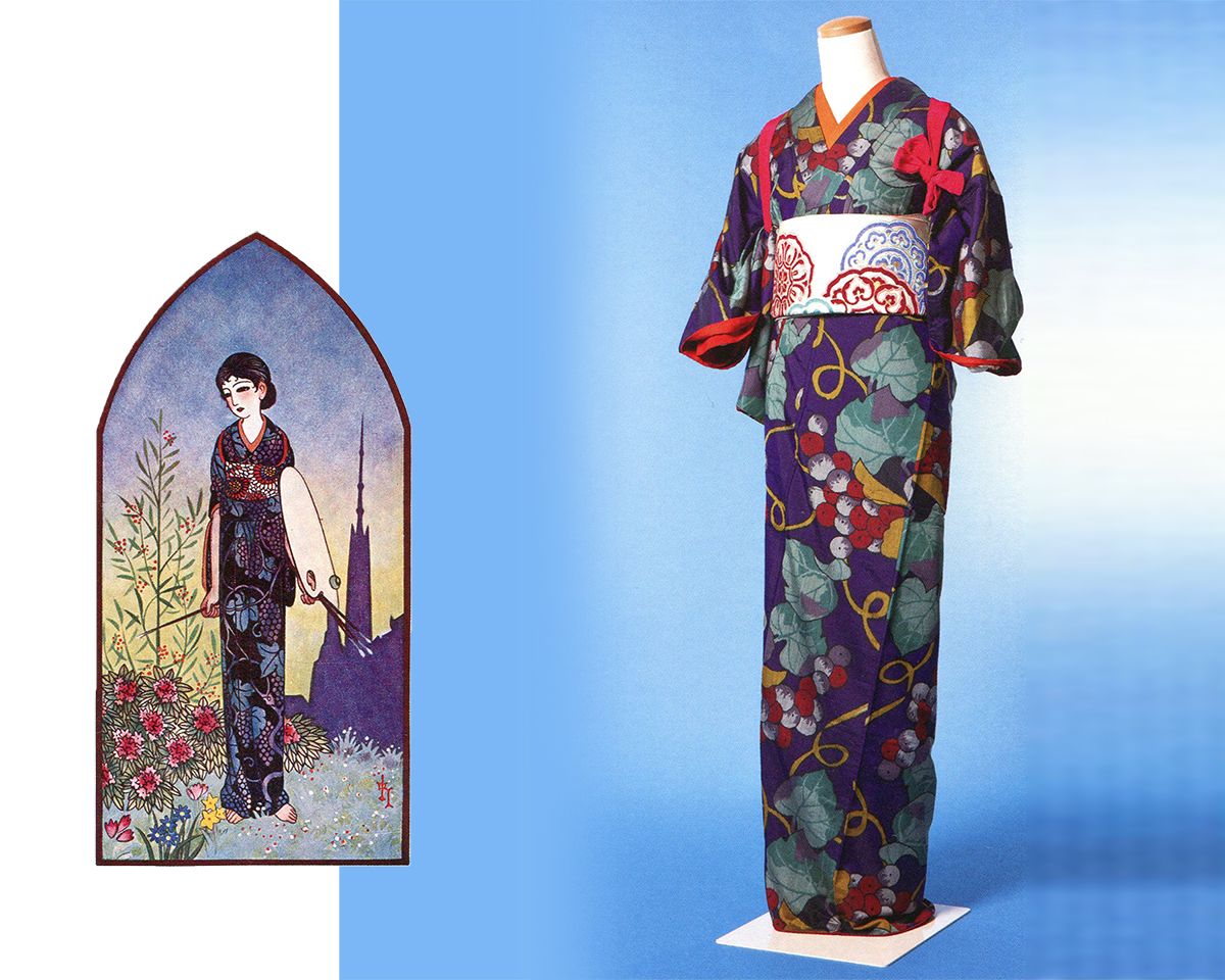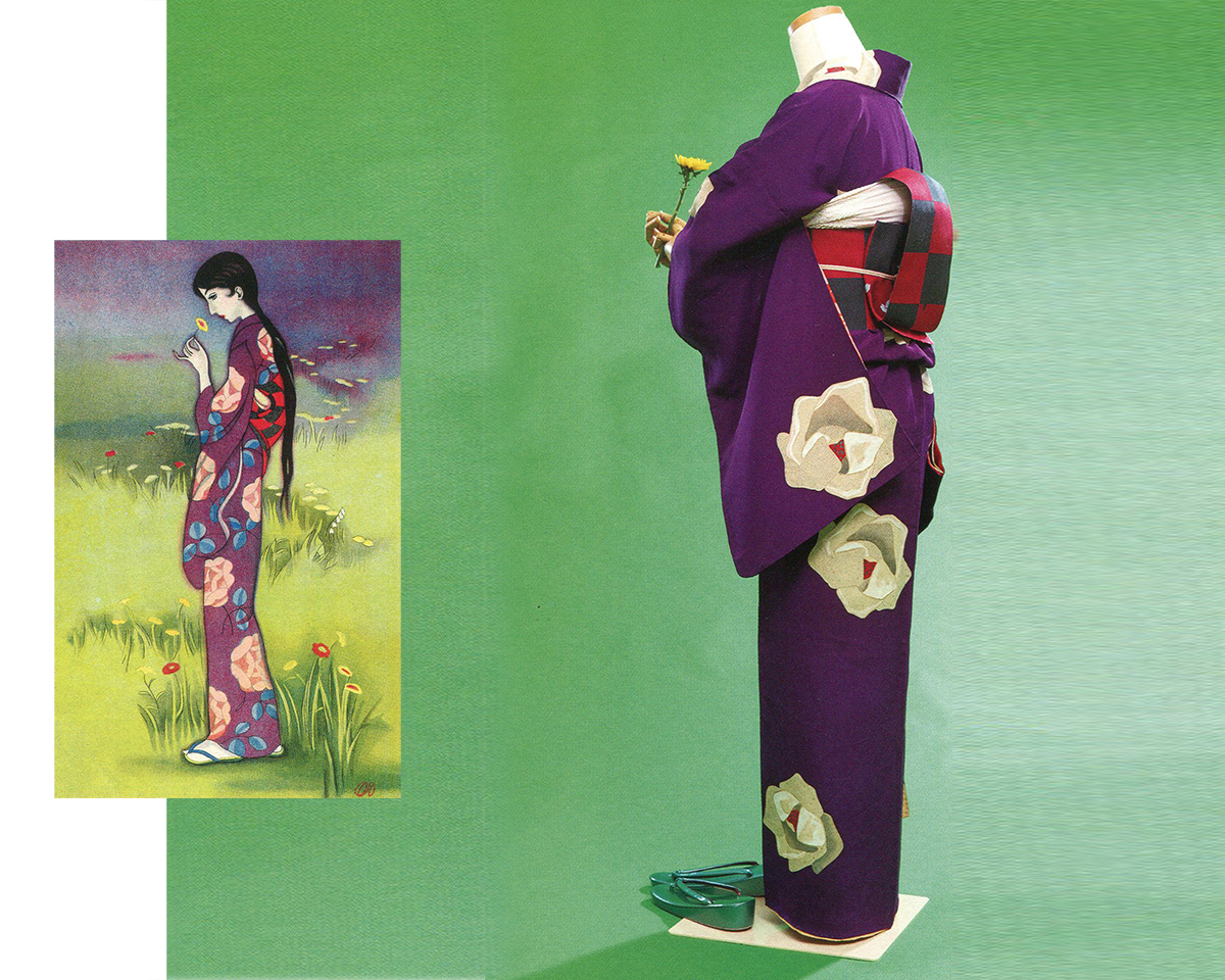Artist/illustrator Takehisa Yumeji (1884- 1924) was one of the foremost painters of beautiful jazz age women (bijin-ga). The exhibition takes advantage of the fact that his wife was his chief model, and the museum owns all the kimonos she used when modeling for the paintings.