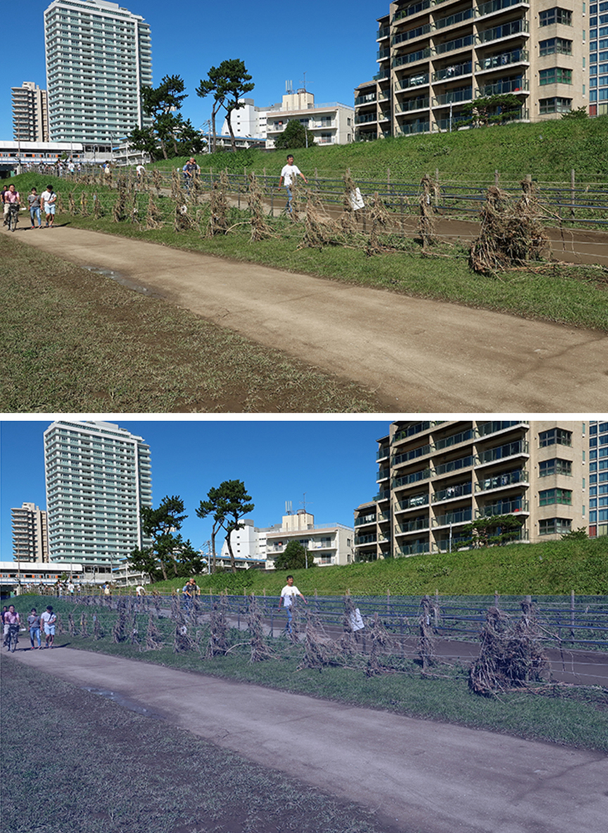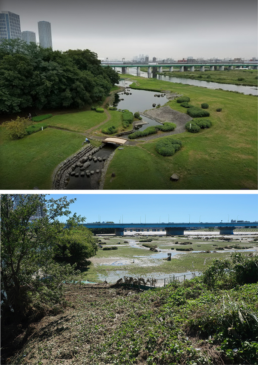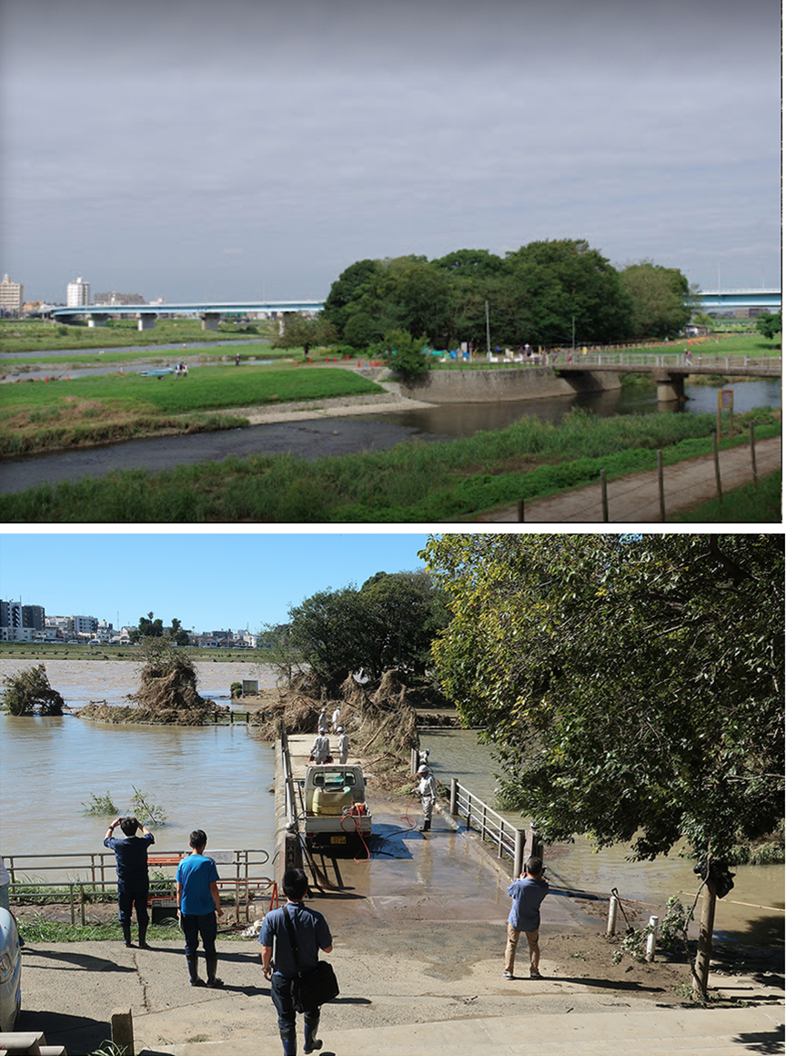 I found a few pictures of the area on the net, and although they’re not taken from the same angle, you can get the idea of how much the place changed after Typhoon Hagibis had its little rampage.