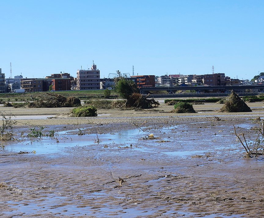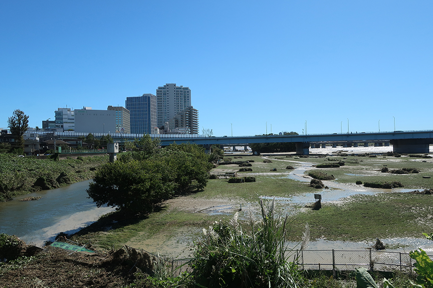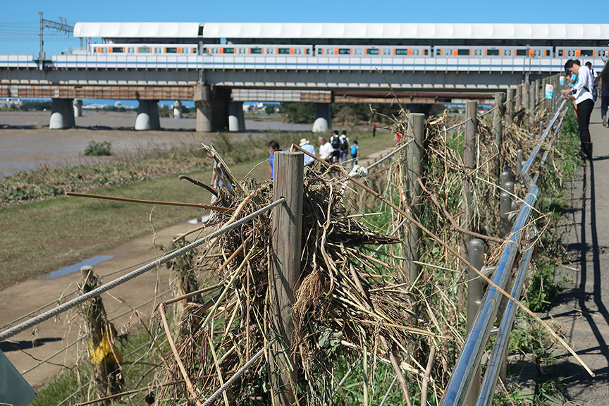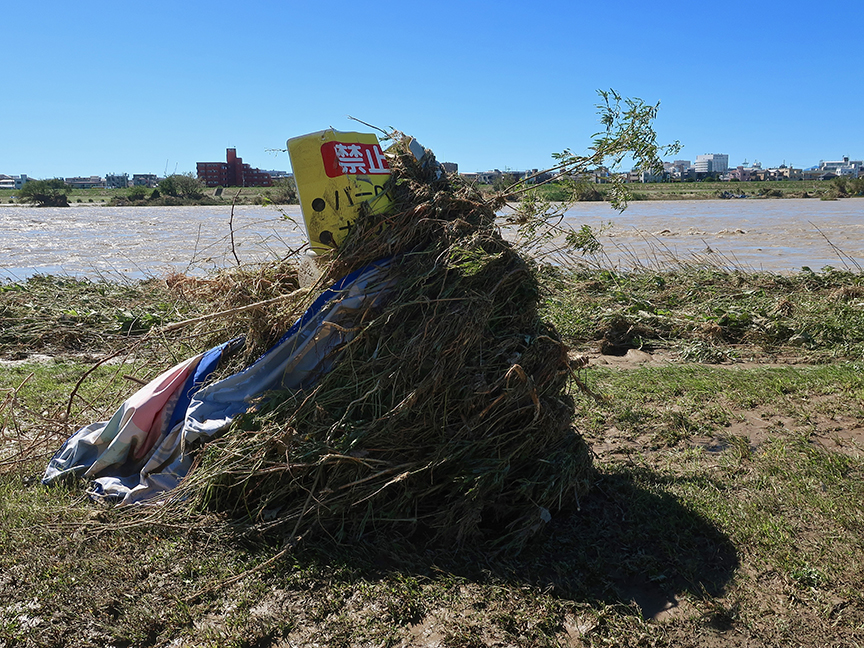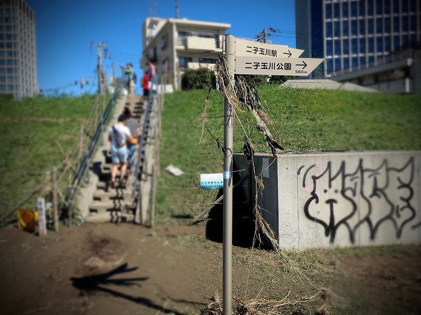 Today when I woke up, it was hot and sunny. It didn’t seem possible that twelve hours ago, the biggest typhoon in sixty years was raging through Tokyo. So I went out to take a look at one of the places that had been evacuated – a neighborhood next to the Tama River.