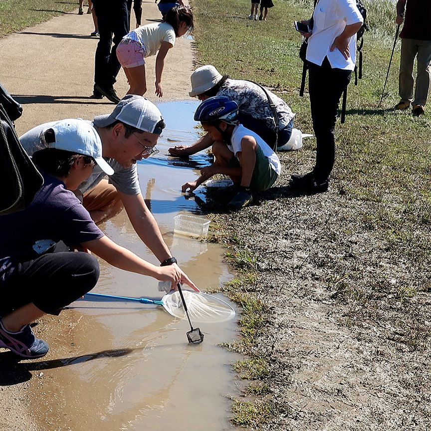 But the typhoon clouds did have one silver lining: only in the aftermath of a heckin’ huge typhoon, can kids go FISHING in sidewalk puddles.