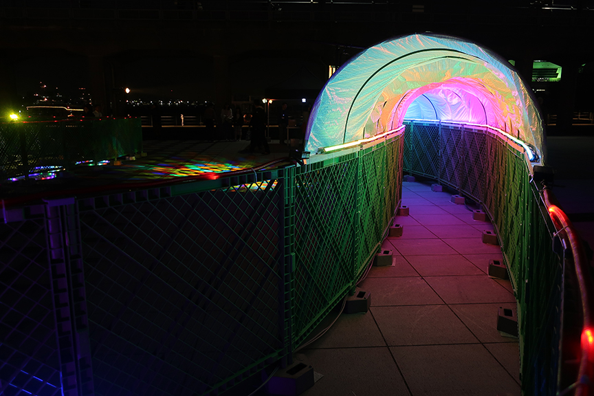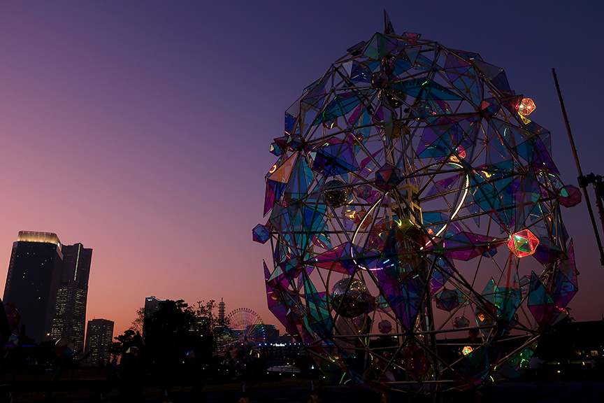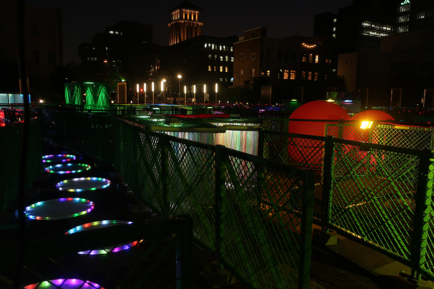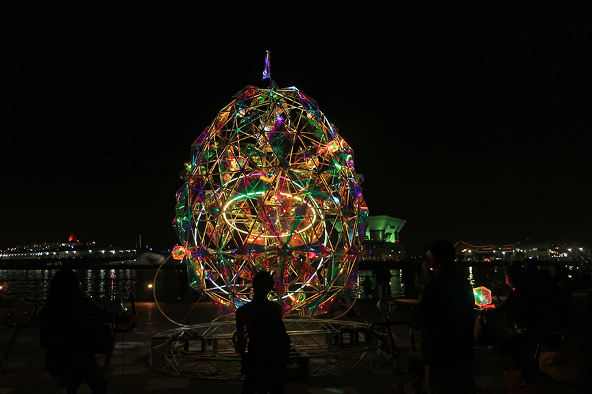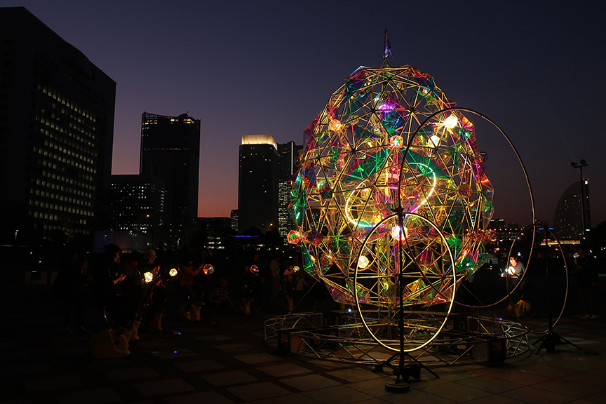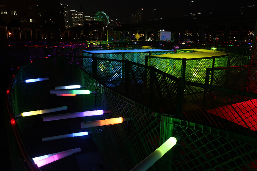 This year, there were fewer artworks at the Yokohama Smart Illuminations, but the ones on exhibit were SO worth seeing! Or – more accurately – worth DOING. Because this year the participation element was front and center, and quite a few of them required serious athletic juice from the audience to power them.