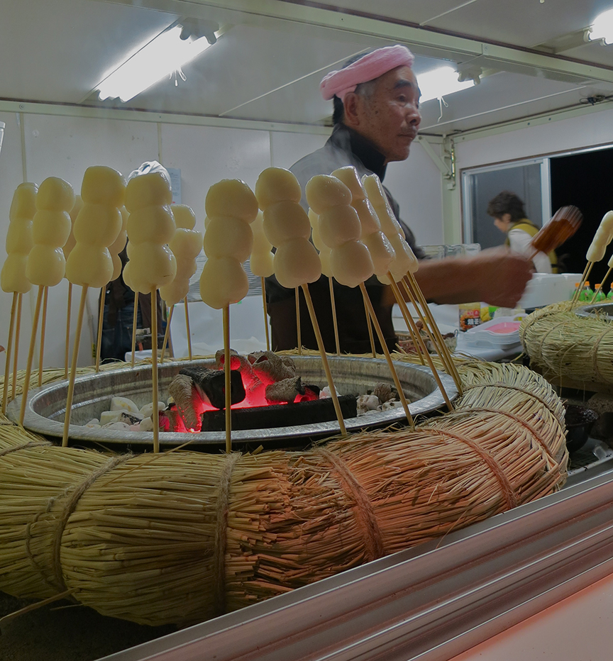 …is to gobble up a tasty stick of miso-sauced rice balls!