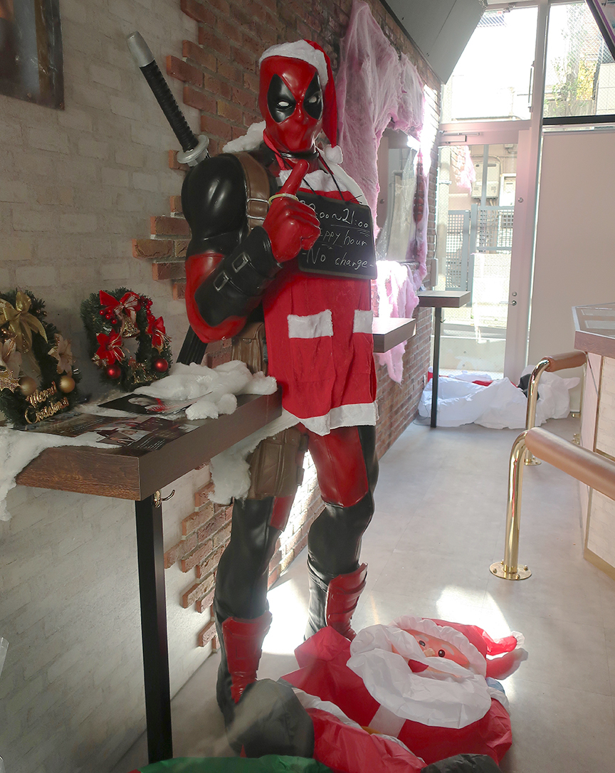Deadpool Santa has already taken out his rival inflatable counterpart in the battle for Xmas hearts and minds