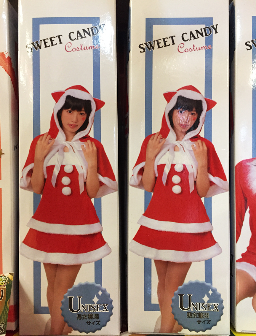 Once again, Japanese costume purveyors are outdoing themselves with even more WTF ways to impersonate Saint Nick, which (I think you’ll have to agree) is a pretty heroic effort if you dispense with the red suit, the beard, and even the tiniest nod to jolly…
