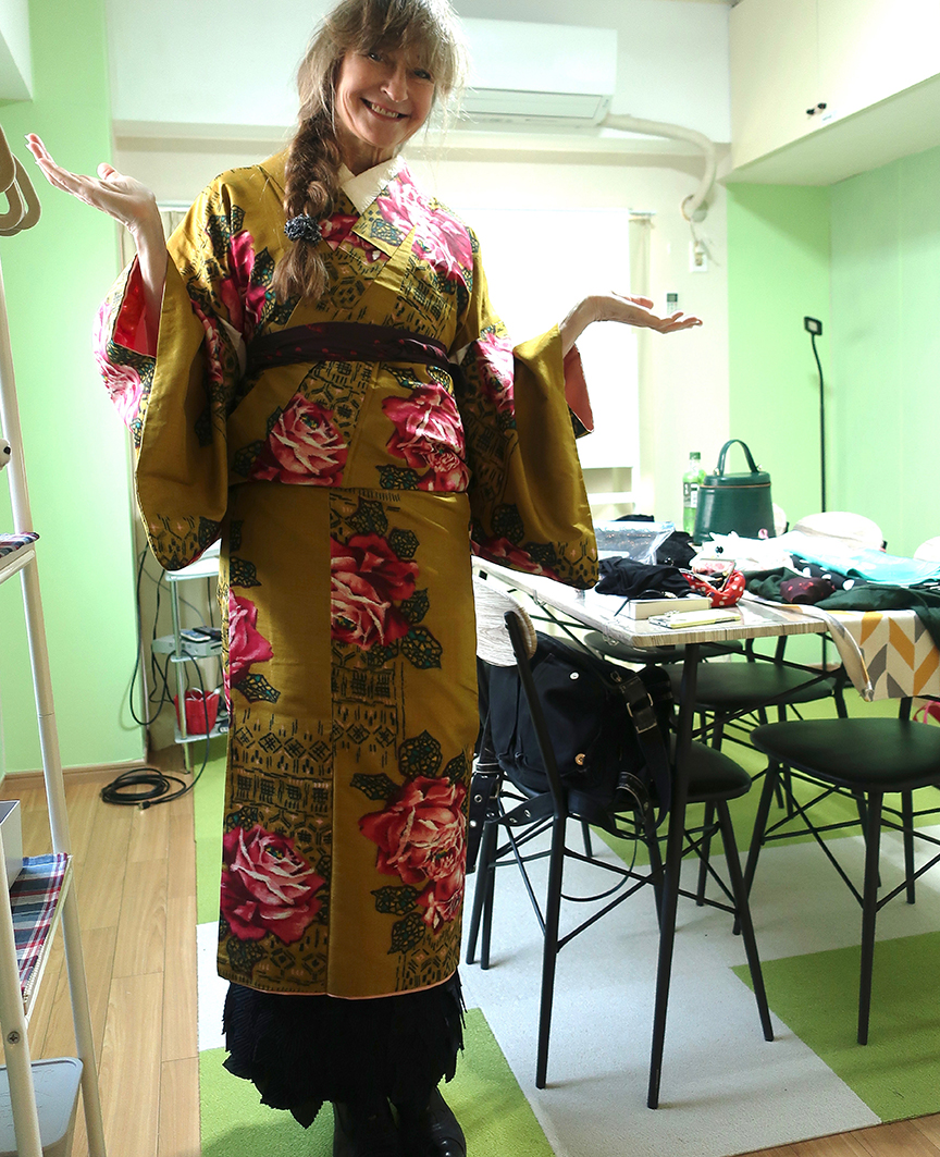 A week before we met, Anji asked me if I had any favorite colors, and to send a few photos that would give her an idea of my personal style. I sent a few drab, dressed-in-black things, but I’ve seen the out-of-this-world kitsuke ensembles she wears herself, and begged her to ignore how I usually look. There’s nothing I wanted more than to get a SALZ Tokyo kimono makeover, and to look like her instead!