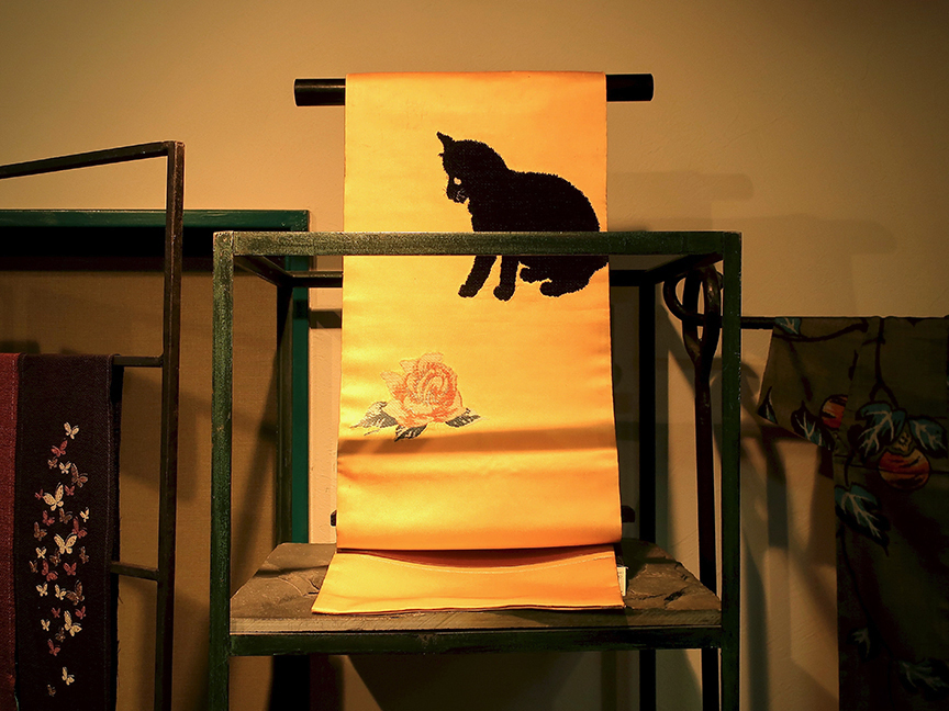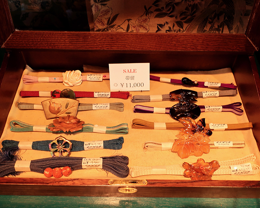 Beautiful, bright silk kimonos and obis woven in bold motifs were stacked three-deep, all around. Everything was calling to me so loudly, I couldn’t decide where to look first