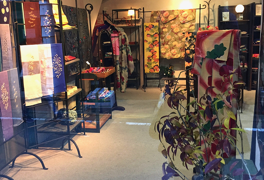 Today I was beelining toward a garden, through a neighborhood I never visit, when I was stopped cold by the kimono lovers’ equivalent of Aladdin’s Cave.