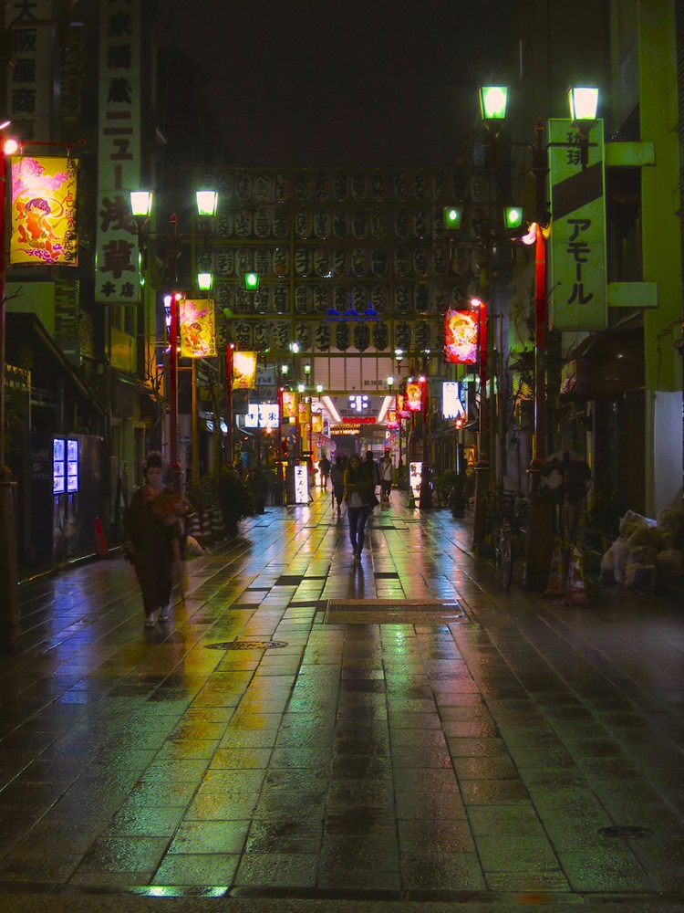 Maybe a geisha hurrying along a side street, on the way to her evening appointment on a rainy night…