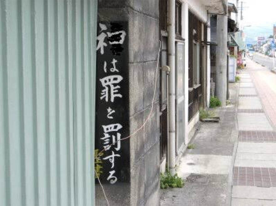 These dire warnings appear on buildings throughout Japan, put there by American missionaries of the grim “scare people straight” ilk. I only put a few here—there are many more funny ones in Derek Wessman‘s Twitter feed, and Mutantfrog has an excellent history of this odd attempt at proselytizing, if you want to explore in more depth.
