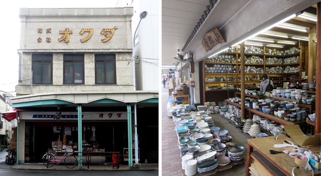 You recognize Kappabashi, right? The kitchenware district, where you can make your own plastic food? The shop on the left actually says “Okuda” across the top, and that building is what inspired me to give Nori’s family that name too. (The interior of her family’s shop is more like the one to the right, though)