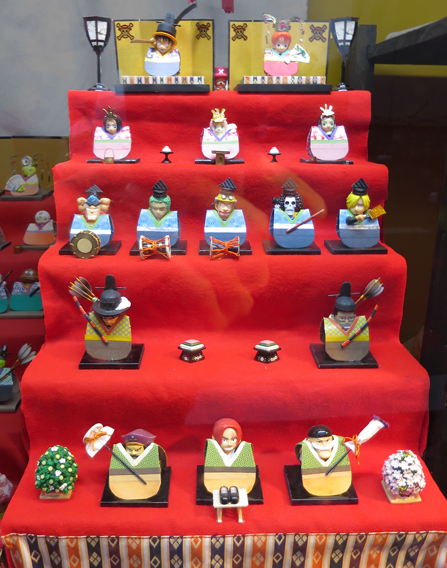 I saw all these sets in the town of Katsuura, which is famous for displaying 40,000 dolls all over town for Girls’ Day, but the set below is my favorite. Katsuura is a fishing town, so I adored this traditional set that’s been modified to give a nod to the local industry.