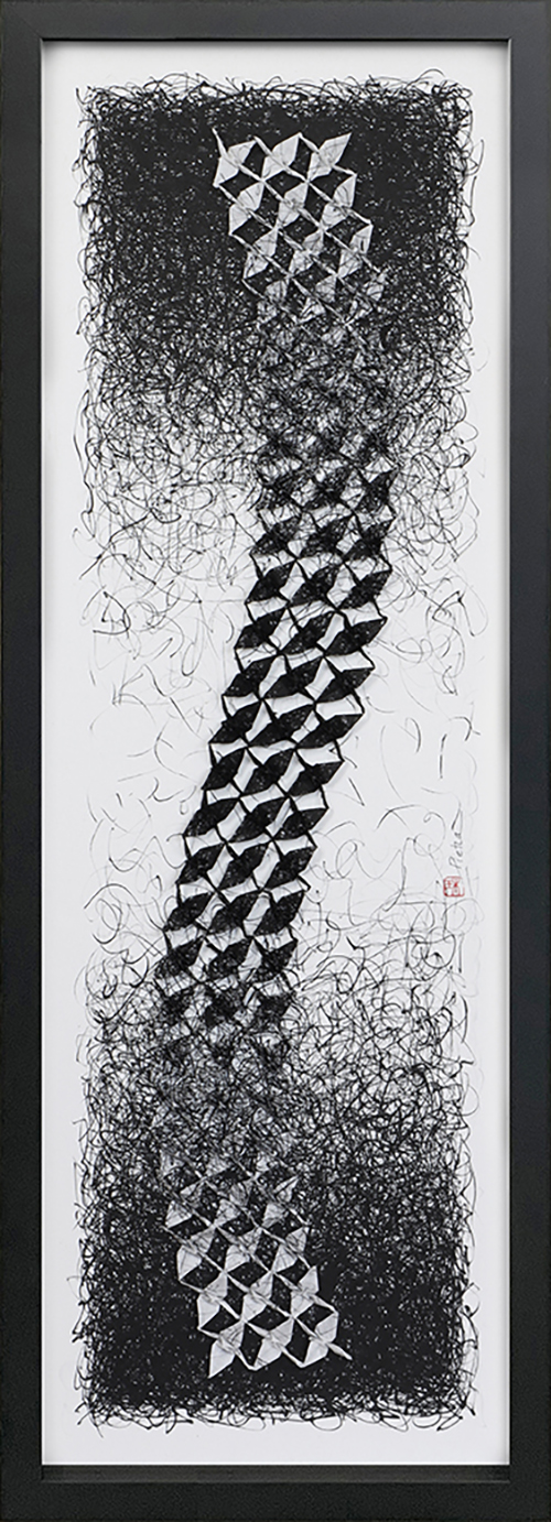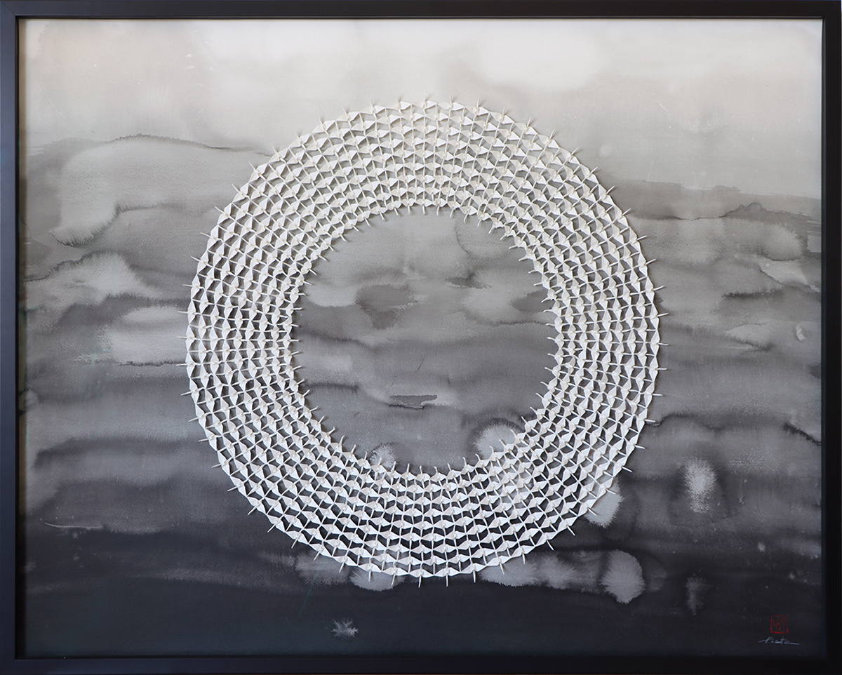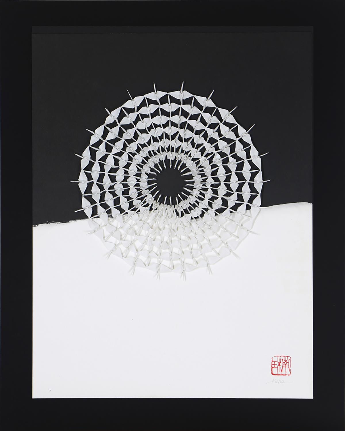 Not only is each one satisfyingly perfect, Pietranera trained in sumi-e painting as well as renzuru, so the interconnected birds are mounted on backgrounds that are works of art in themselves.