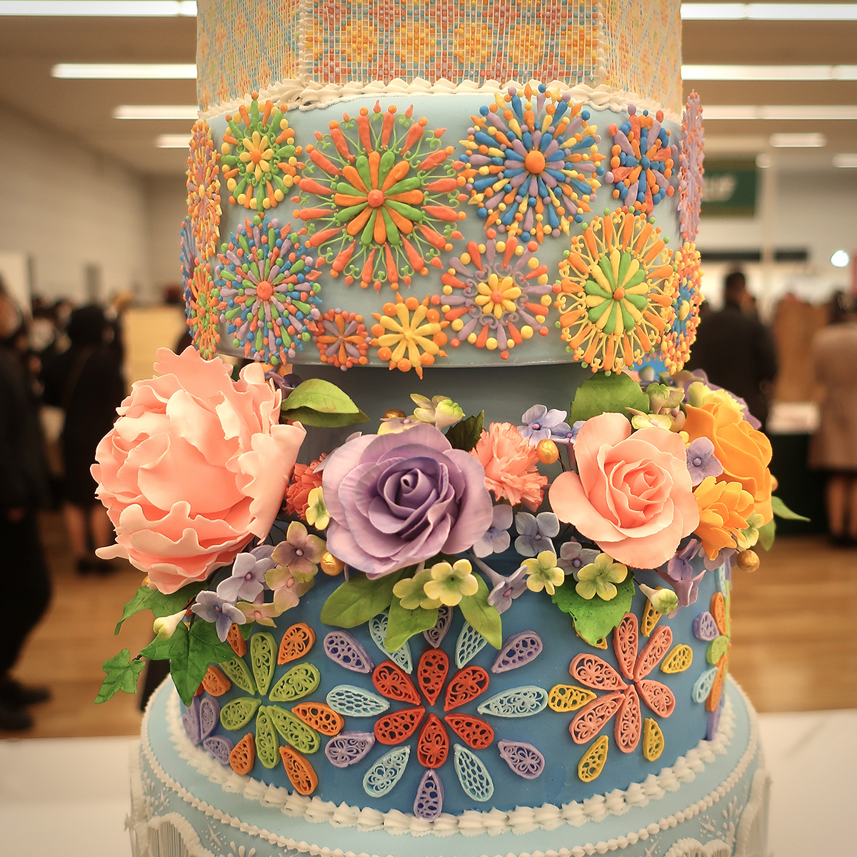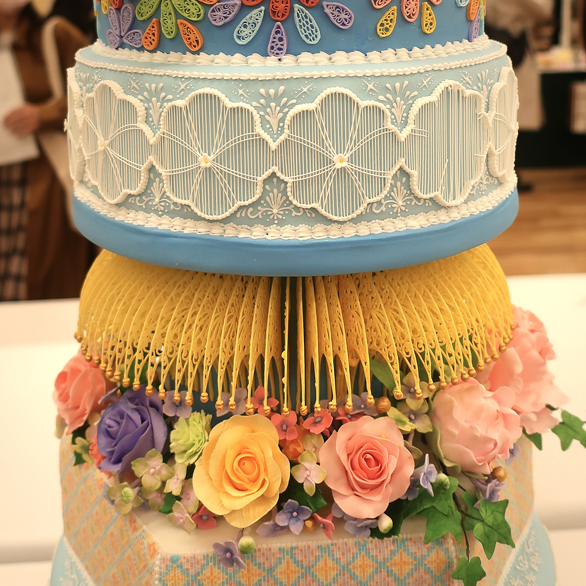 Detail of multi-tiered cake at the Japan Cake Show Tokyo