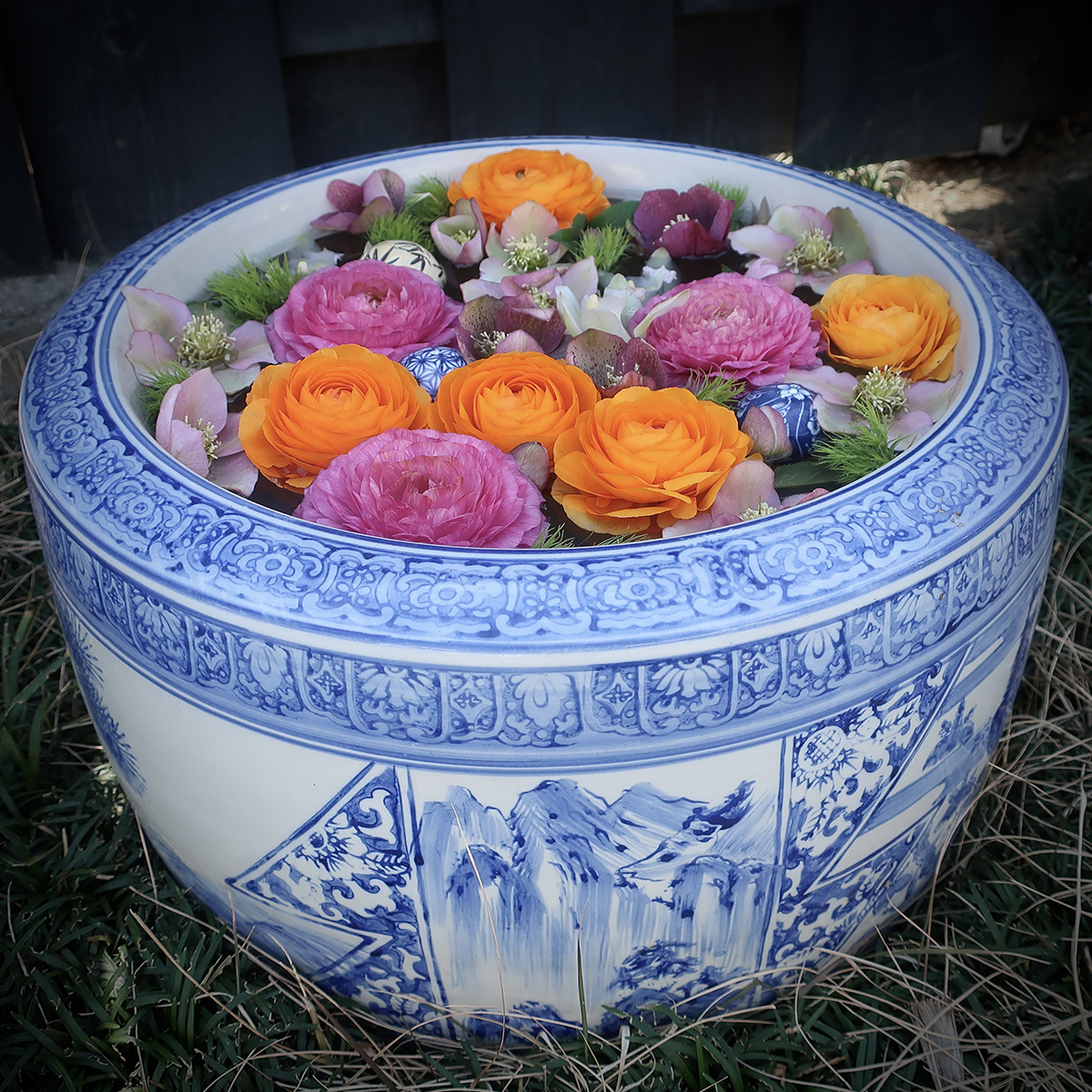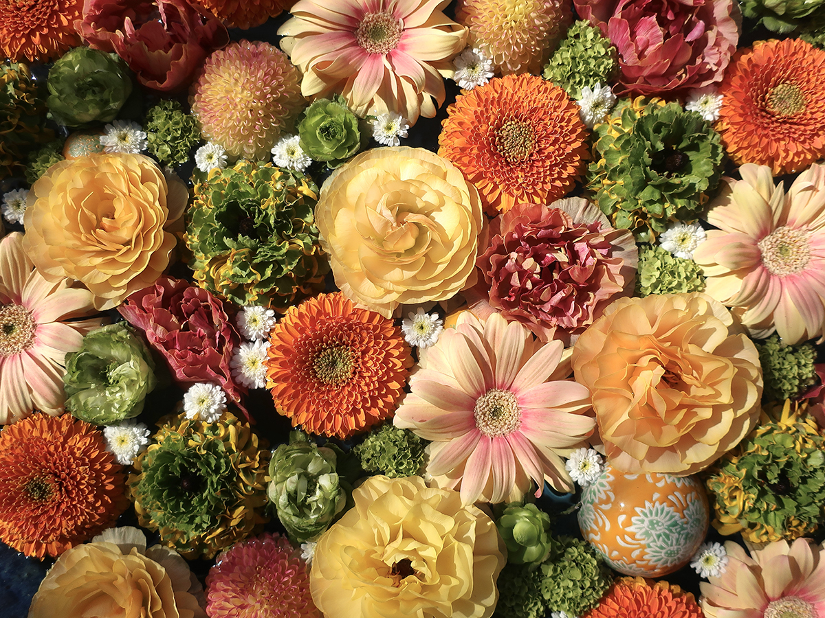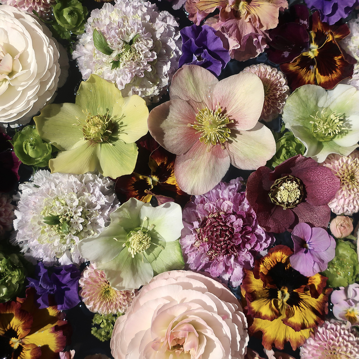 And put together blossoms whose shape and way of growing could never work in a vase, but compliment each other beautifully when floating in a bowl.