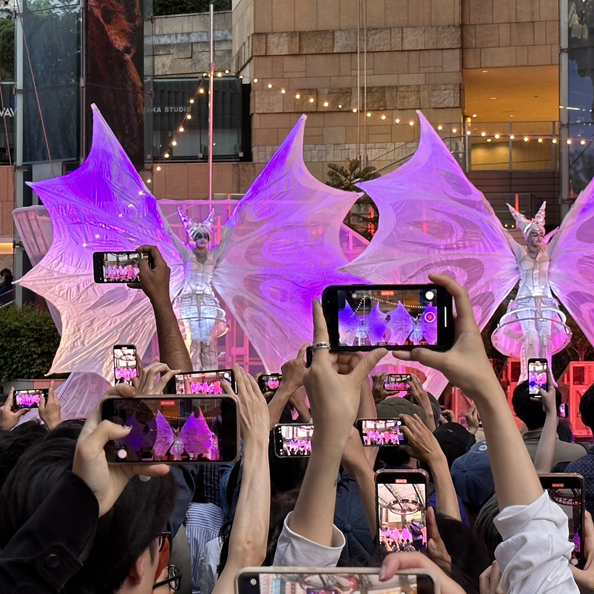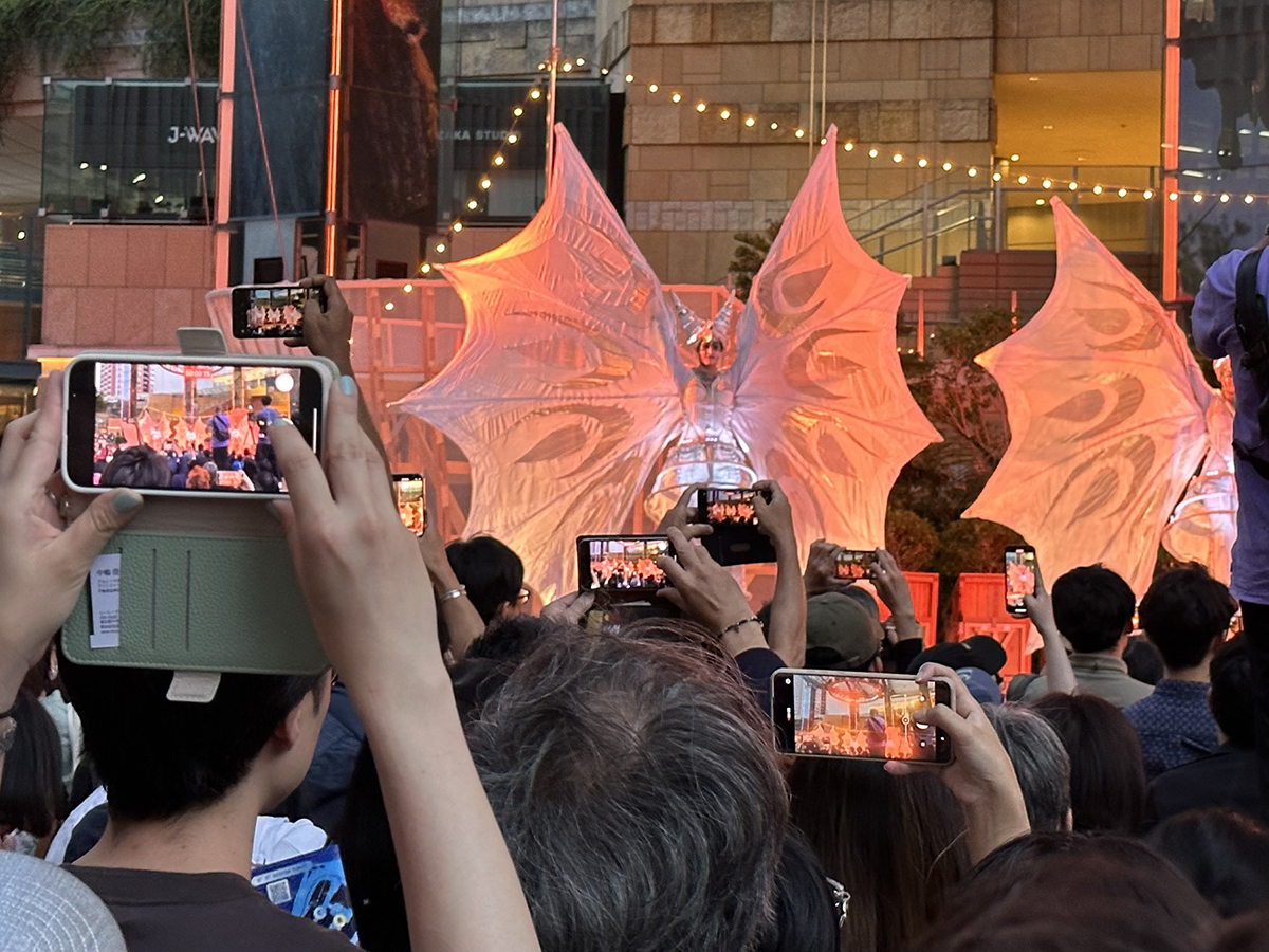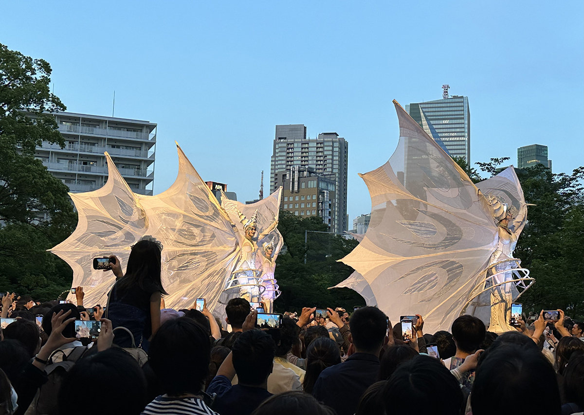 The winged dancers did a turn in the arena, then walked out among the crowd…