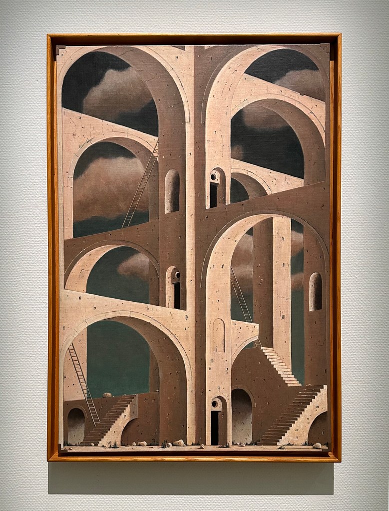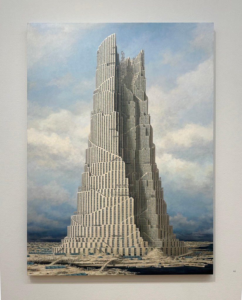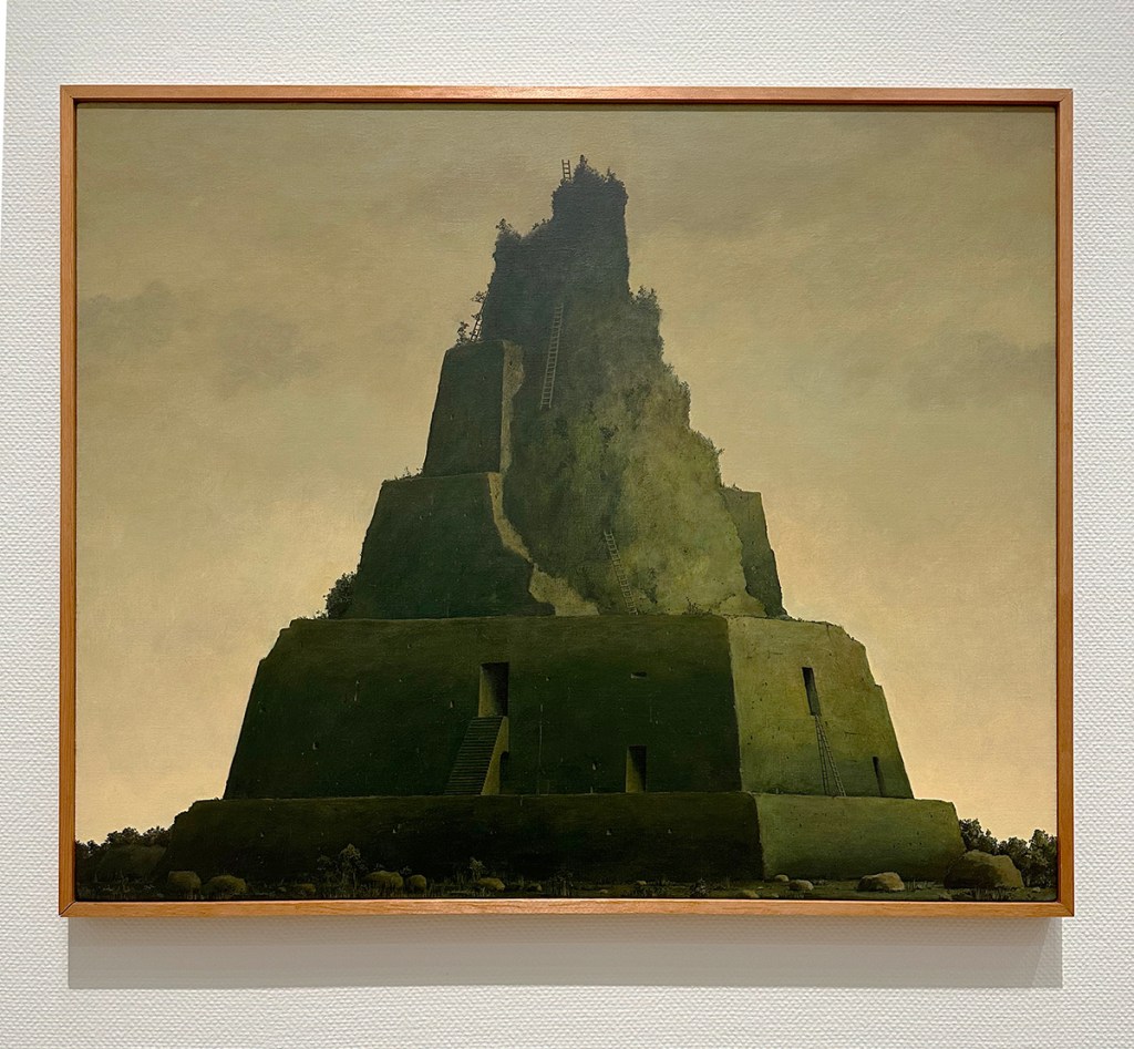 The final paintings in the exhibition—his most recent—feel more hopeful at first…until you realize that this is what his world would look like as it recovers from the scourge of humans. That after we’re gone, we’ll leave behind beautiful artifacts whose purpose will be lost in time before being slowly and silently swallowed by nature, until there are few signs that we were ever here.