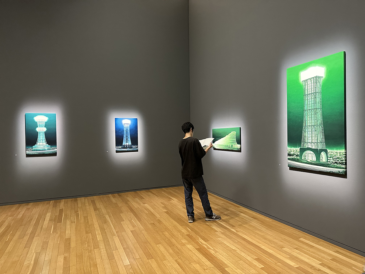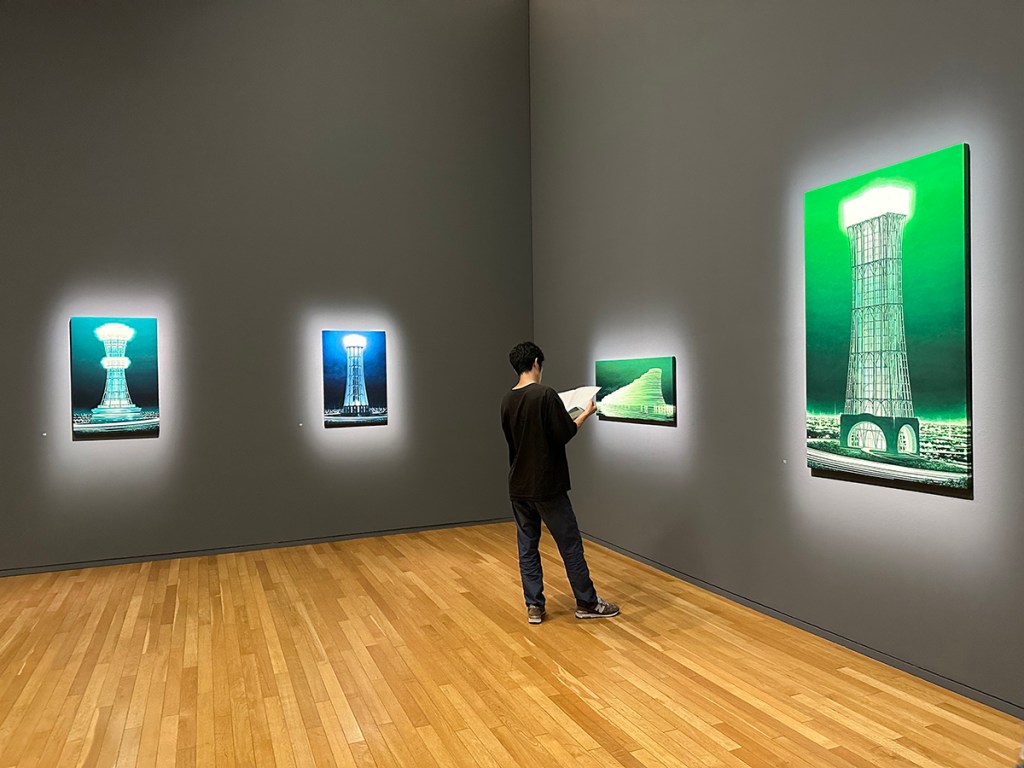 He takes a sharp stylistic detour into toxic colors with the series of “Skyglow” paintings he made in the years prior to the triple disaster of the 3/11 earthquake, tsunami and nuclear meltdown. They were actually inspired by uncontrolled industrial light spilling into the night sky, but they feel eerily clairvoyant.