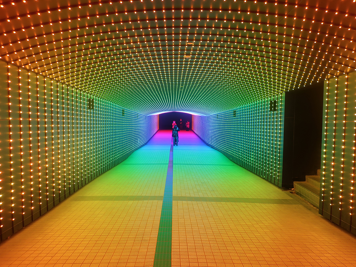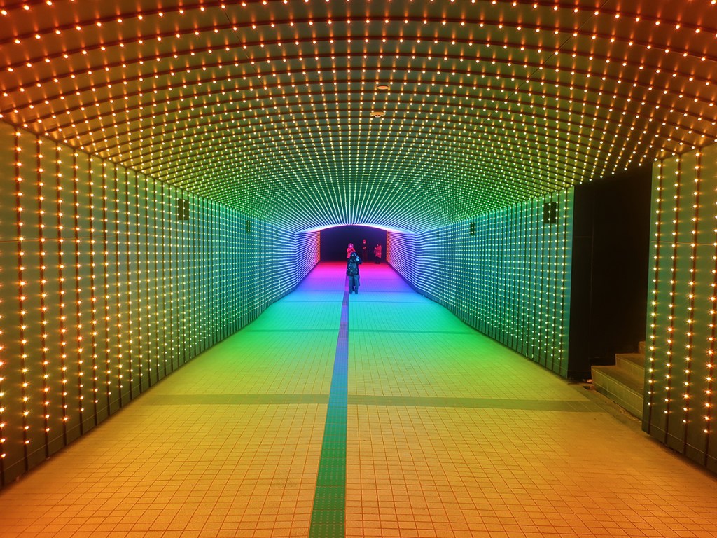 Even the dull indoor hallways that get you from here to there have been transformed into digital environments that make you want to linger to see all the ways you can walk the light fantastic.