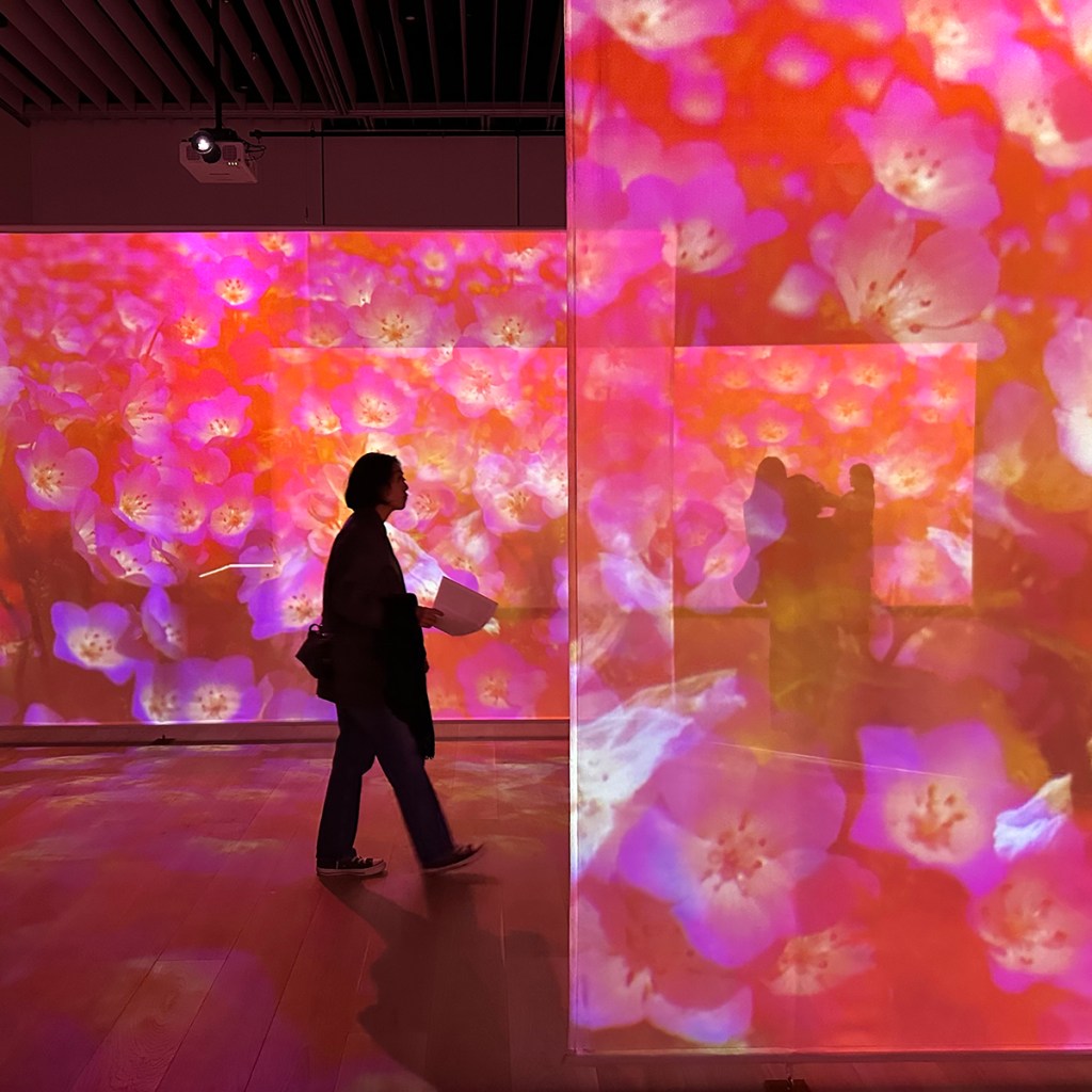 before you get to the final gallery, where videos of floral extravaganzas play across giant translucent screens you can walk between.