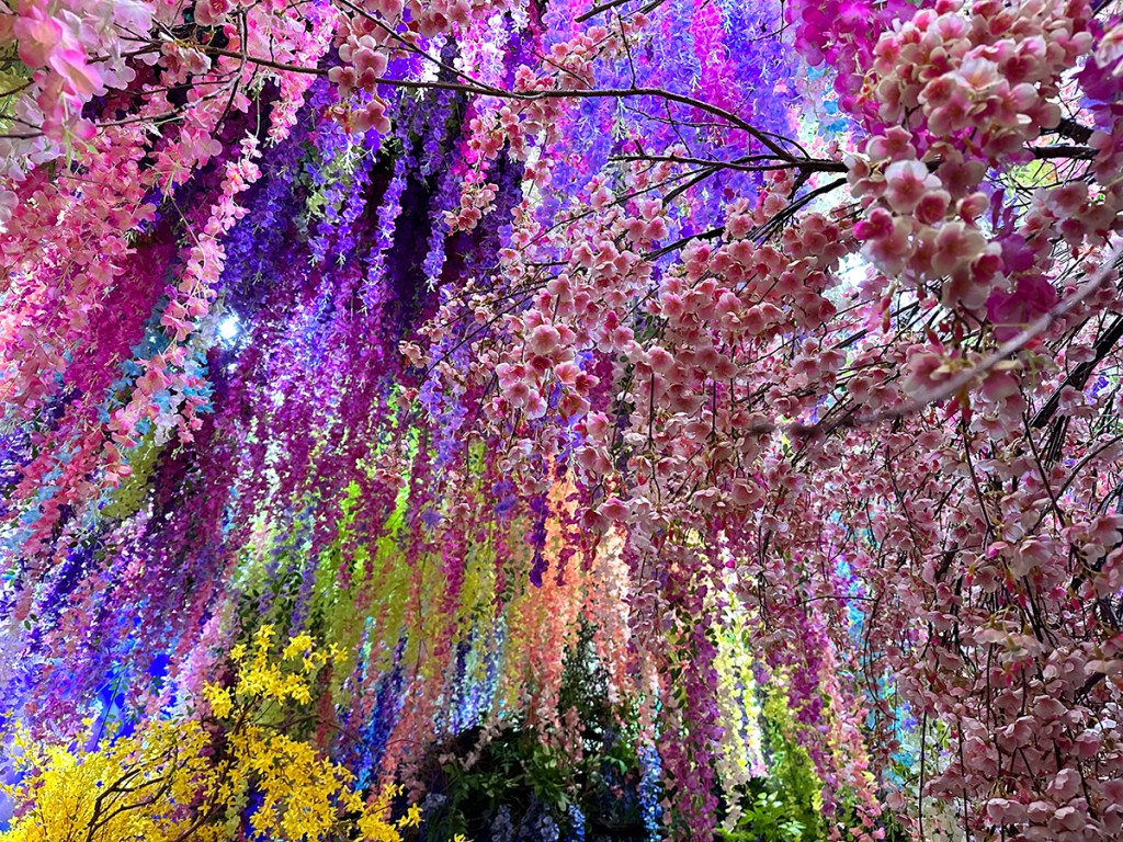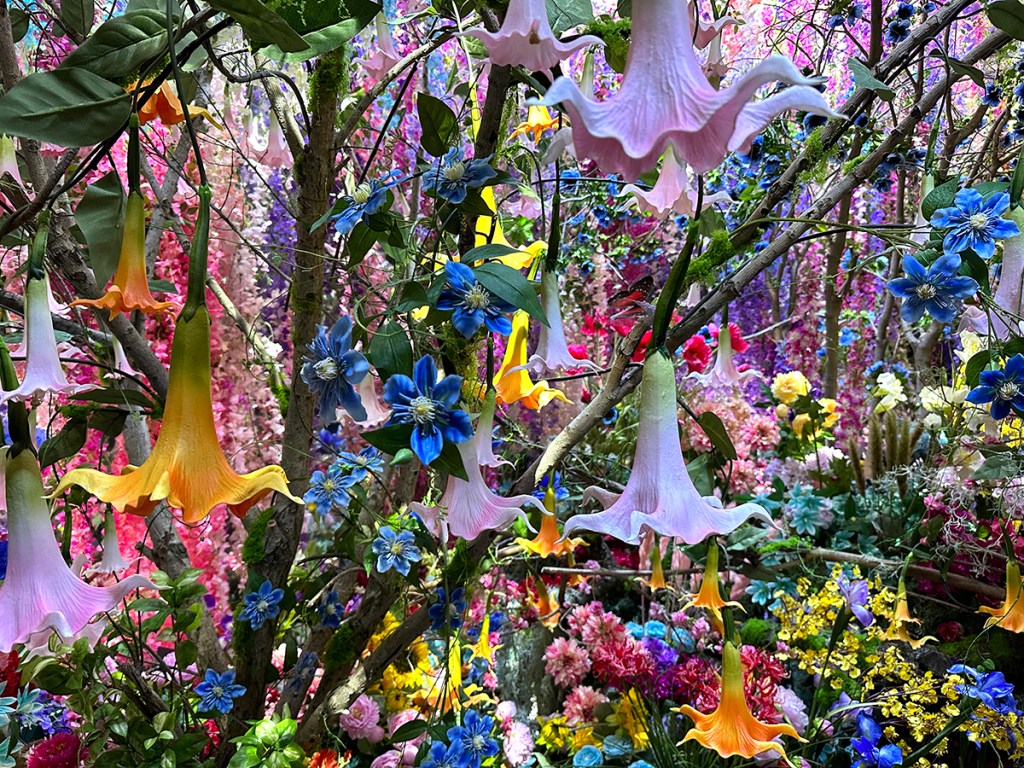 followed by rooms full of fake flowers, with every blooming tree and plant bursting forth out of season and all at once.