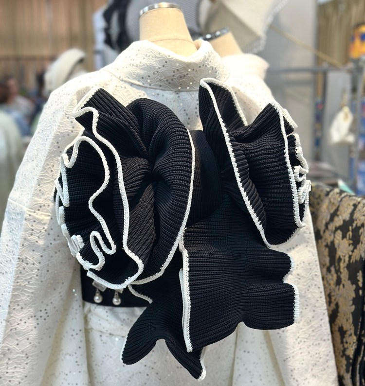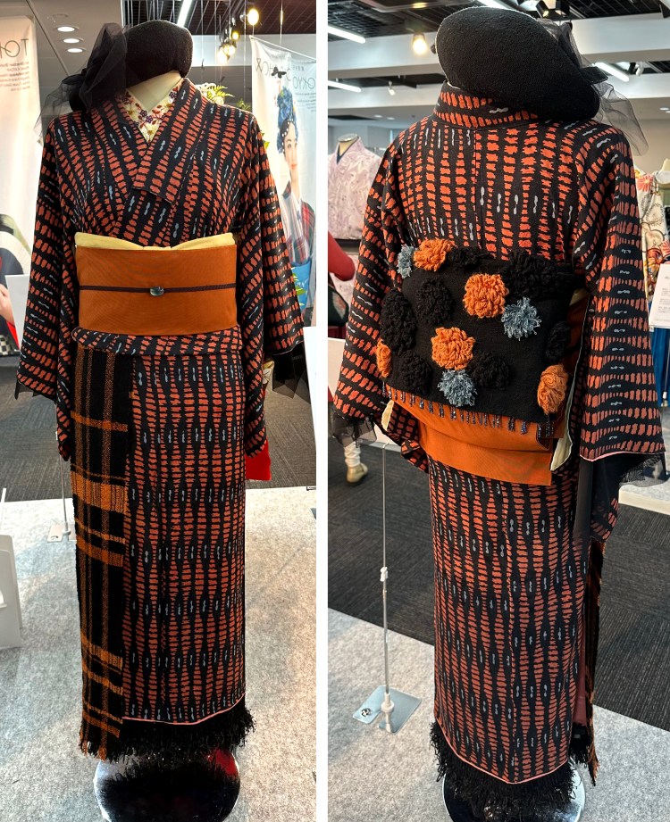 My personal favorites this year were this oh-so-<chef’s kiss> woolen ensemble featuring an obi garnished with pompoms and bead fringe…