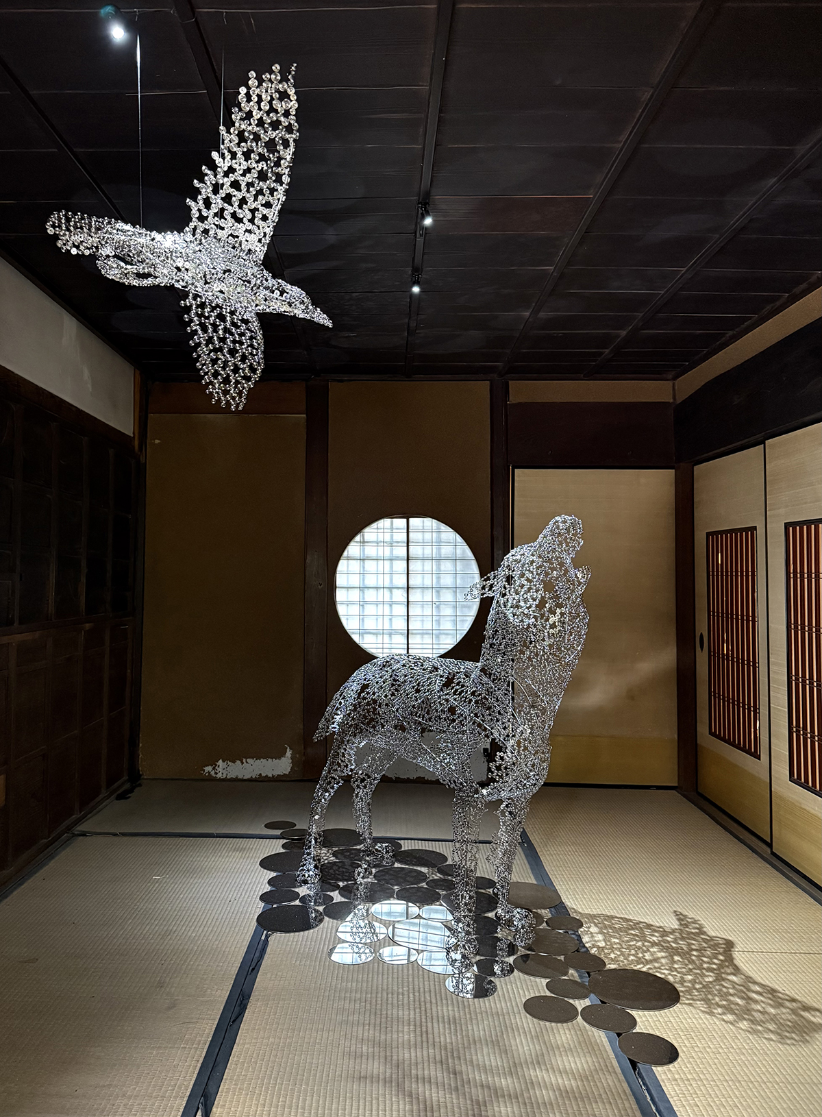 The Biwako Biennale isn’t just an exhibition of the best Japanese art of 2025, it’s a masterpiece of displaying new art in historic settings, with dramatic lighting to die for. Whoever paired the winning pieces with each gorgeously restored merchant house was a genius, and this little detour on the way to Kyoto is well worth the stop.