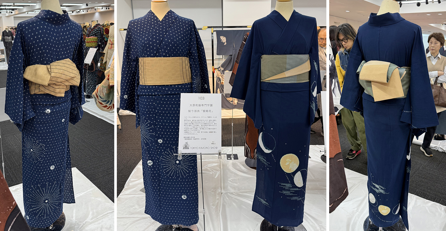 These traditional indigo-dyed shibori pieces by fashion design students were perfectly paired with summer obis…