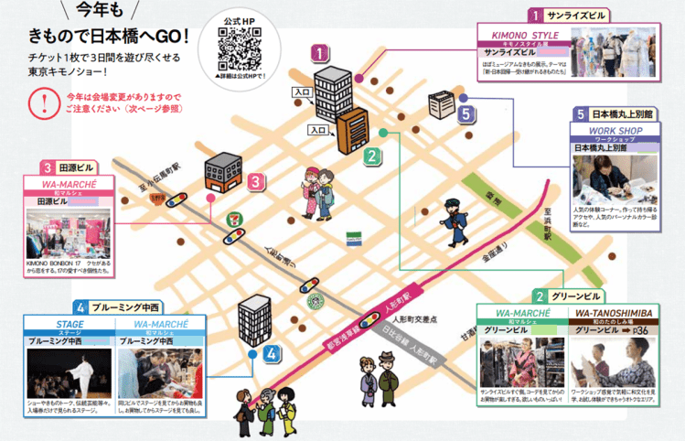 This exhibition is spread out over a few blocks in the Ningyōchō neighborhood, and features not just the hall of kimonos, but also workshops, events, shops and demonstrations of traditional Japanese arts. The price of admission covers all three days, making it quite a bargain for kimono lovers!