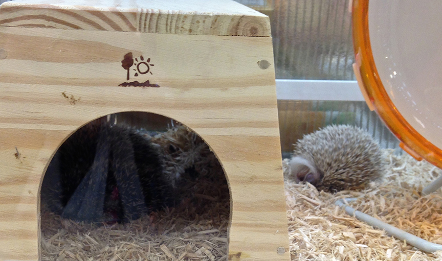 See that fluffy-looking little ball to the right of the Hedgehog Palace? This is what your new pet will look like during daylight hours.