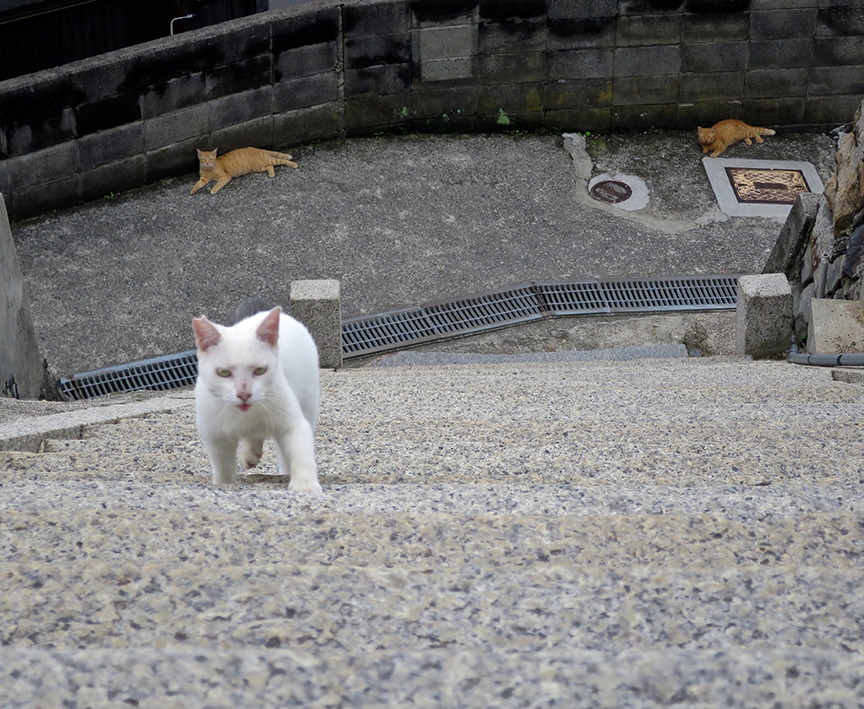 This was supposed to be a picture of dozens of eager kittehs roaring up the stairs to partake of my squid snax.