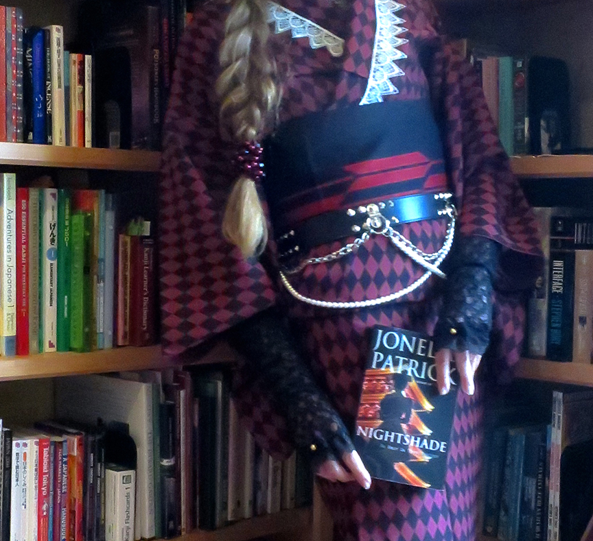 Me holding the first copy of Nightshade in my hot little hands, and yes, that’s a Princess Style kimono I’m wearing because that’s how we spell SLACKING OFF FROM WORK around here