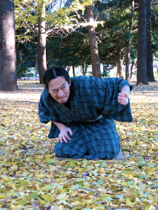 Other performers hone their skills in the park, like actor Hiroyuki Ootomo, who performs rakugo – traditional Japanese storytelling.
