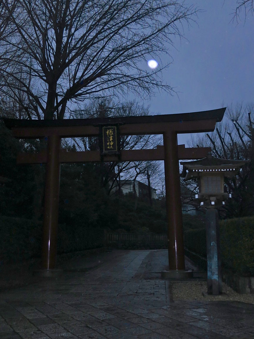 Previous Image Next Image 33.NezuToriiNight The giant torii gate at the entrance to the Nezu shrine becomes a spooky portal at night.