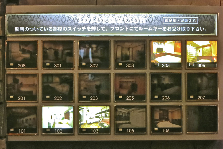 Previous Image Next Image 60.ChooseRoom There’s a display in the lobby for choosing a room. The lighted ones are still available.